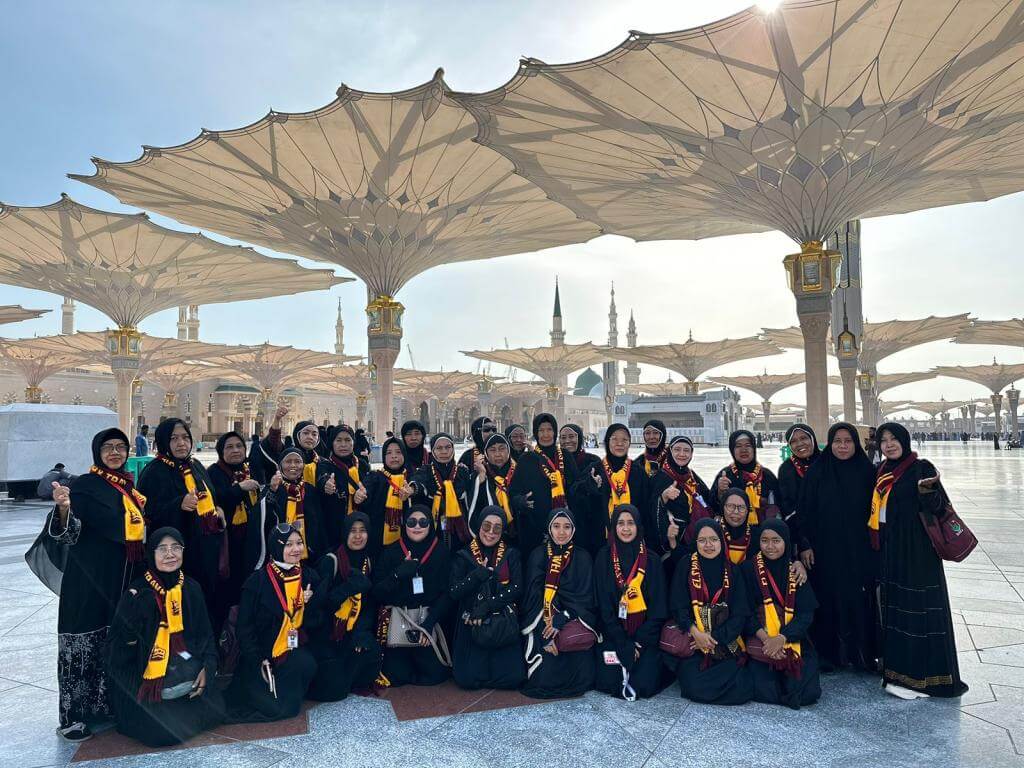 - Perlengkapan : Koper kabin, koper bagasi, tas paspor, kain ihram/mukena, sandal, buku manasik, kain seragam, syal, & sabuk